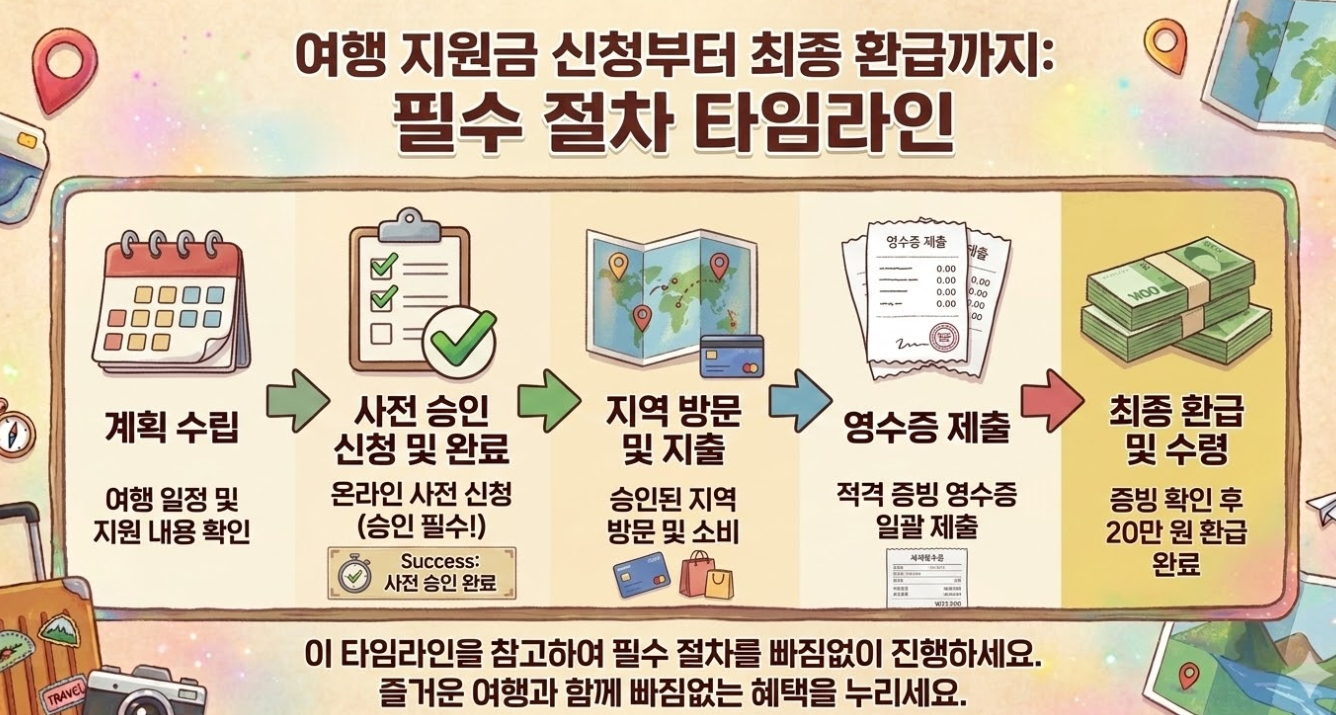 단순히 지정된 지역을 방문하여 소비하고 영수증을 제출한다고 해서 자동으로 환급이 이루어지지는 않습니다. 국가 예산이 투입되는 사업인 만큼, 철저한 사전 승인과 객관적인 지출 증빙 시스템을 거쳐야 합니다.