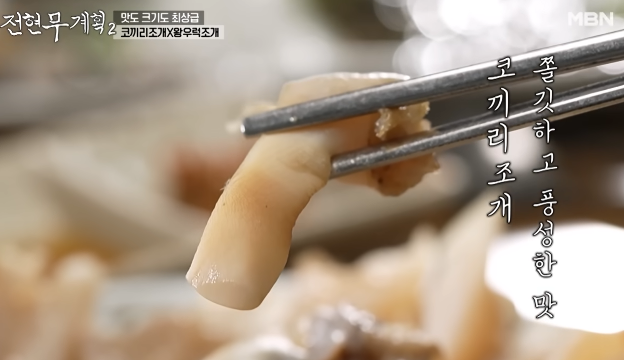 "코끼리 조개는 정말 이방이 꽉차요. 쫄깃쫄깃."
