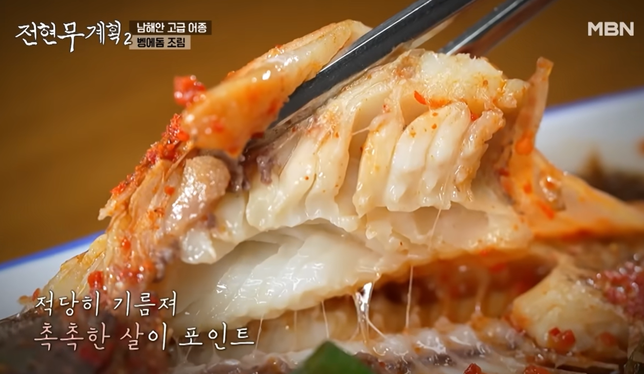 벵에돔은 지방질이 풍부한 생선이다. 그래서 조림으로 만들어도 살이 녹진하고 촉촉하다. 뻑뻑하지 않고 수분감이 살아있다. "한 마리를 흔하니까 조여 먹는 거야. 귀하지 않으니까"라는 말이 나올 정도로, 거제에서는 일상적인 반찬이다. 참기름 고소한 향과 함께 제공되는 벵에돔조림은 본 메뉴가 나오기 전 입맛을 돋우는 역할을 한다.