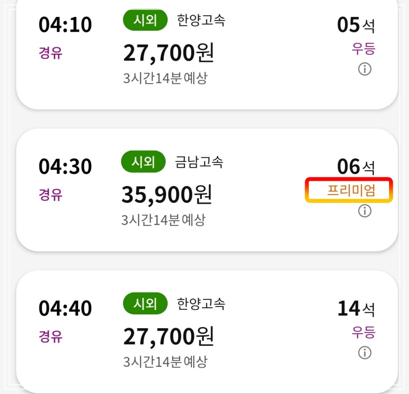 공항버스 예약화면으로 가보시면 우등버스가 있고 일부는 프리미엄 버스가 있는 걸 보실 수 있습니다. 우등버스는 많이들 타보셔서 알고 계실꺼라고 생각하지만 프리미엄은 잘 모르실 수도 있을텐데요. 우등버스도 충분히 편하기에 프리미엄 버스를 이용하지 않을실 수도 있을 것 같습니다. 그래서 프리미엄 버스에는 어떤 차이점이 있는지 한 번 알아 보도록 하겠습니다.