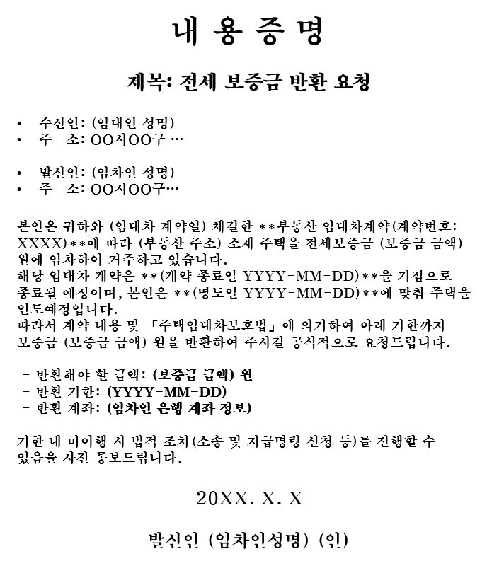 내용증명은 특정 사실이나 합의를 공식적으로 전달하고, 이를 법적 증거로 활용할 수 있는 중요한 수단입니다. 특히 전·월세 계약과 관련하여 분쟁이 발생했을 때, 단순한 구두 협의만으로 해결되지 않는 경우가 많습니다. 이때 내용증명을 통해 법적 입장을 명확히 전달하면 분쟁 해결에 유리하게 작용할 수 있습니다. 상대방에게 자신의 법적 지위와 상대방의 위법 또는 계약 위반 사항을 공식적으로 통보하는 것만으로도 효과적인 압박이 될 수 있습니다.
