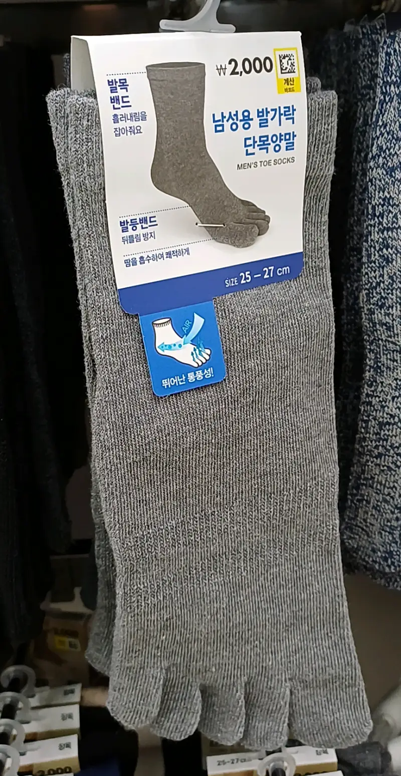 이번엔 기본형 남성용 발가락 단목양말입니다.