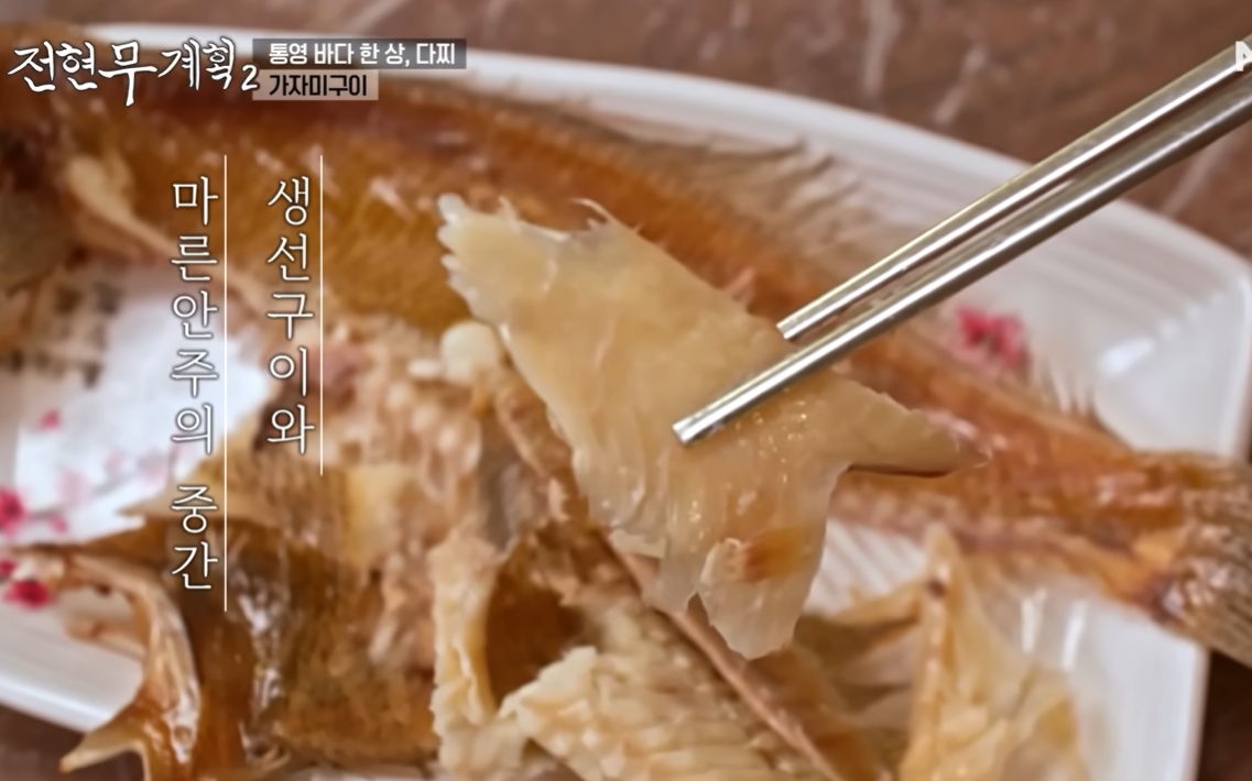 "해산물은 특히 가자미는 반건조가 제일 맛있어요. 이거는 국룰이에요."